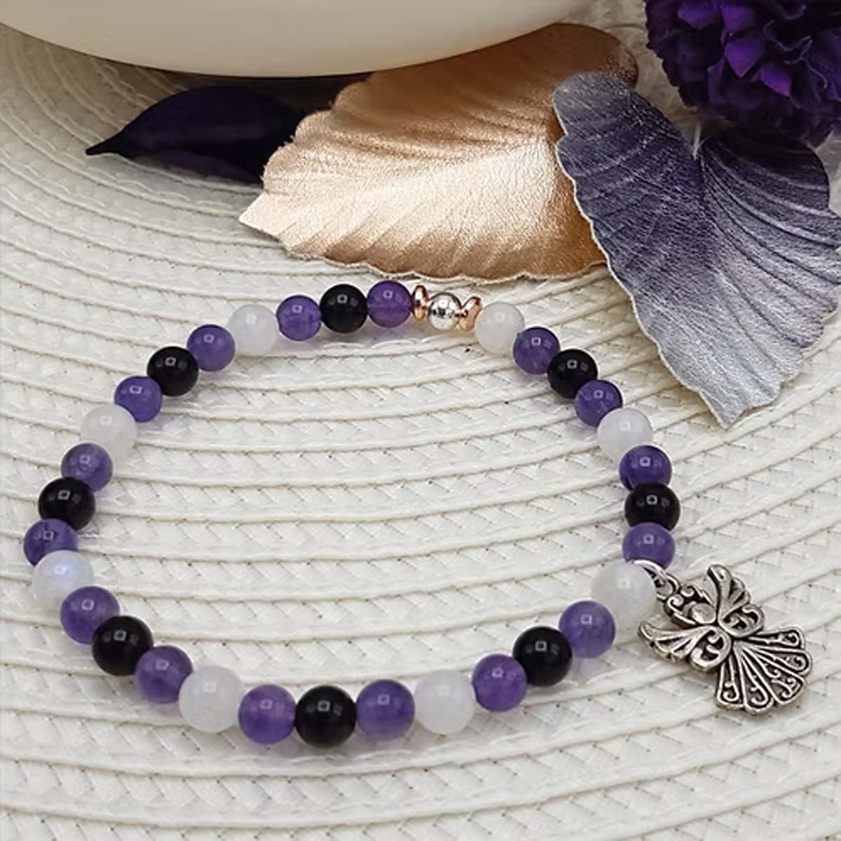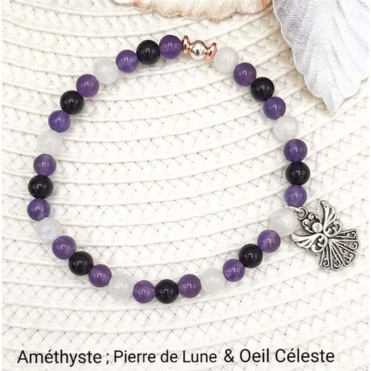 Bracelet Perles Ange – Améthyste – Pierre de Lune – Obsidienne